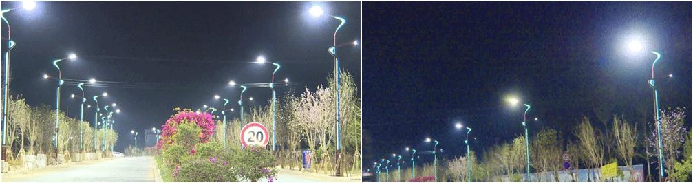 3月27日晚,美麗公路南延線起始段三界橋的夜晚華燈通明,一盞盞造型別致的路燈結束了三界橋夜晚黑暗的歷史,這一路段的試亮燈效果達到預期,將為其它路段的路燈安裝提供借鑒。