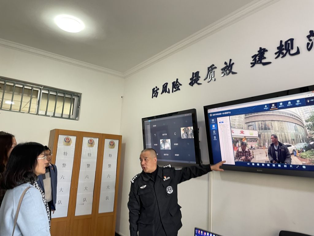 在昆明市公安局特種警察支隊六大隊黨總支副書記付暉同志以及六大隊四中隊書記馬輝同志的帶領和講解下,與會黨員共同觀看特警巡邏接出警及日常工作視頻,參觀警營文化,勤務指揮室、巡邏車車載裝備和作戰裝備,深入認識了特警日常的工作內容和守護人民群眾平安的無畏付出和艱辛,深有感觸。